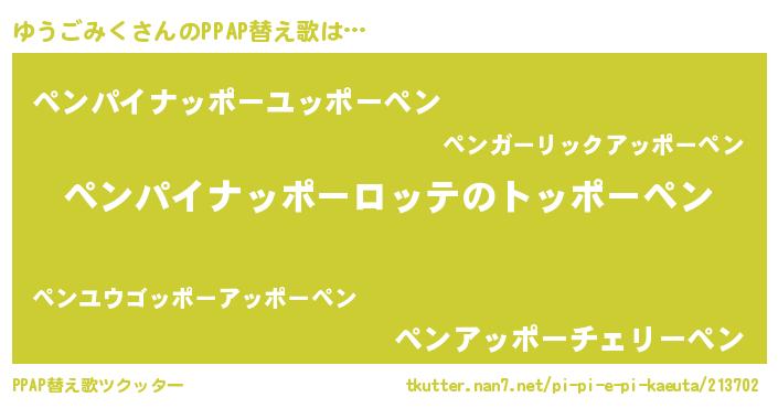 | ピコ太郎風あだ名 | 『ユユ太郎』『ピコユ郎』『ピユ三郎』 |