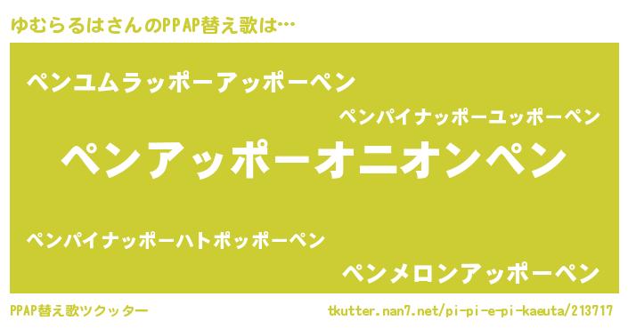 | 意味不明あだ名 | 『自称ゆむらるは』『ニラ科ゆむらるは属』 |
