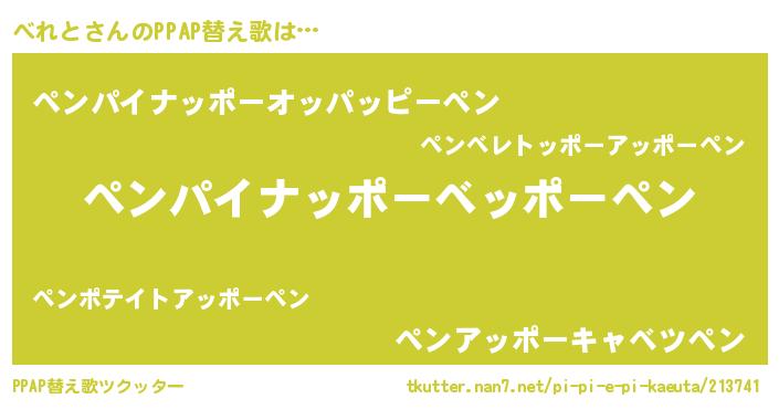 | 意味不明あだ名 | 『自称べれと』『永久保存べれと』 |