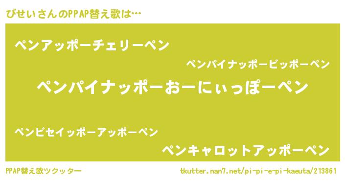| ピコ太郎風あだ名 | 『ビビ太郎』『ピビ六郎』『ビコ史郎』 |