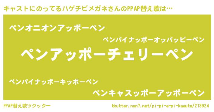 | 料理風あだ名 | 『キャストにのってるハゲチビメガネとほうれんそうの和風グラタン』 |