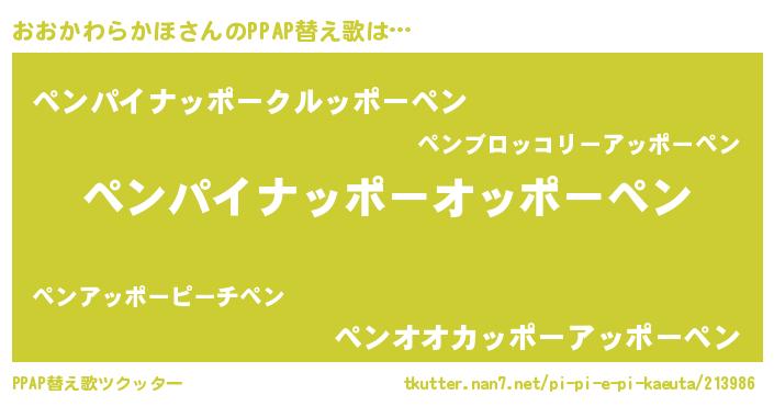 | 欧米人風あだ名 | 『おおかわらかほ・ステッグマイヤー』 |