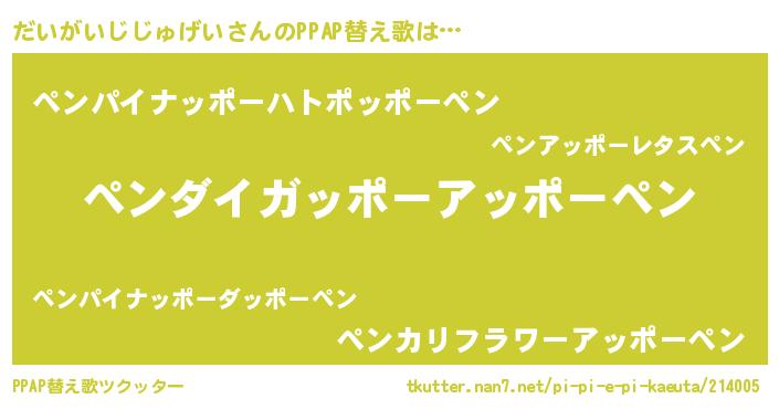 | ピコ太郎風あだ名 | 『ダイ六郎』『ダダ太郎』『ダコ二郎』 |