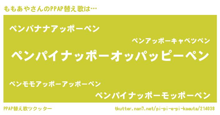 | 欧米人風あだ名 | 『ダレノガレももあや』 |