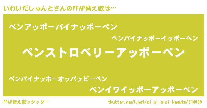 | ピコ太郎風あだ名 | 『イコ一郎』『ピイ太郎』『イワ史郎』 |