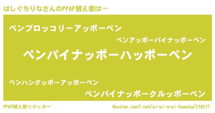 | ピコ太郎風あだ名 | 『ピコハ郎』『ハコ十郎』『ハハ太郎』 |