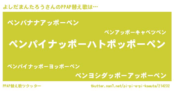 | 欧米人風あだ名 | 『ダレノガレよしだまんたろう』 |