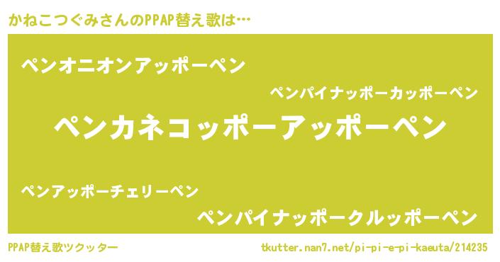 | 欧米人風あだ名 | 『ウサインかねこつぐみ』 |