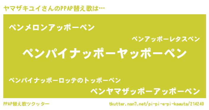 | 欧米人風あだ名 | 『ダルビッシュヤマザキユイ』 |