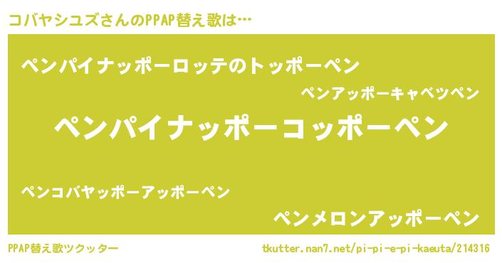 | 胡散臭い通販商品みたいなあだ名 | 『来世でも幸せになれる水素水…その名も「コバヤシユズ」』 |