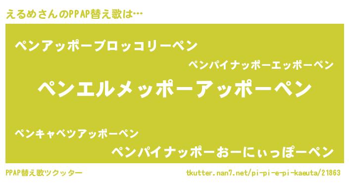 | 意味不明あだ名 | 『自称えるめ』『とにかく怪しいえるめ』 |