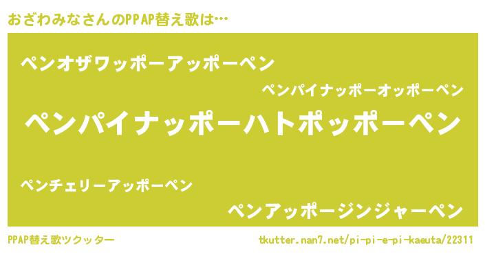 | ピコ太郎風あだ名 | 『オオ太郎』『オザ三郎』『ピオ三郎』 |