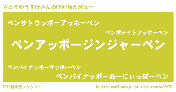 | ポケモン風あだ名 | 『サトウダネ』『ヒサトウユウスケ』 |