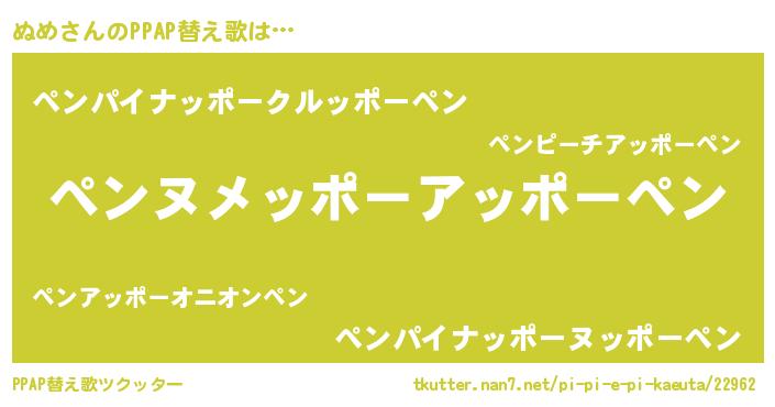 | ピコ太郎風あだ名 | 『ヌメ史郎』『ヌヌ太郎』『ピコヌ郎』 |