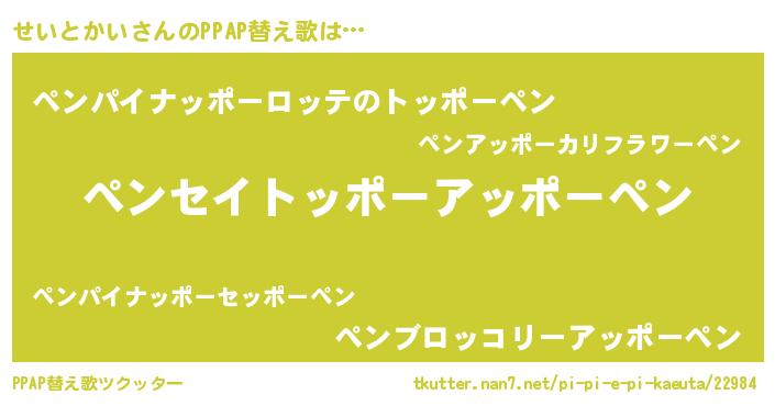 | 欧米人風あだ名 | 『ウサインせいとかい』 |