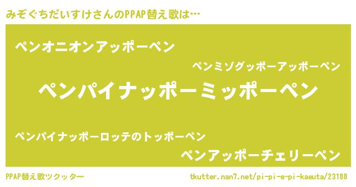 | 欧米人風あだ名 | 『アンジェラ・みぞぐちだいすけ』 |
