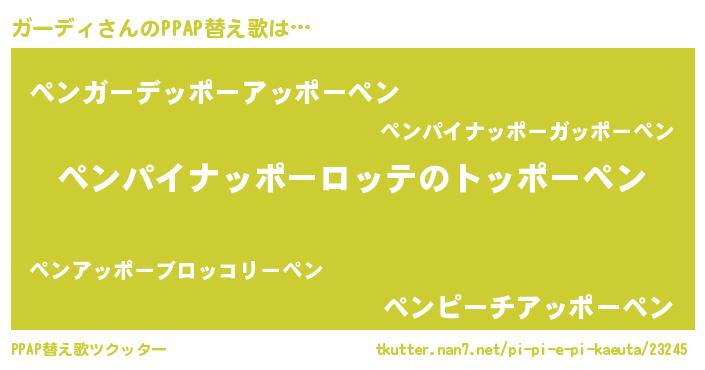 | 男性向けラノベタイトル風あだ名 | 『ガーディに滅ぼされるだけの簡単なお仕事です』 |