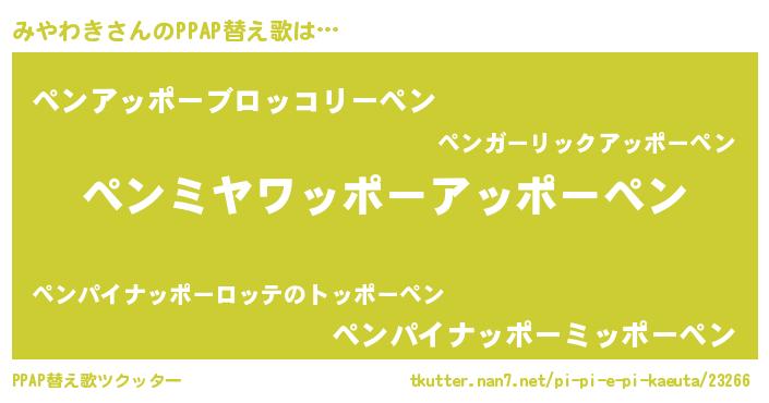 | ピコ太郎風あだ名 | 『ミヤ次郎』『ピミ十郎』『ピコミ郎』 |