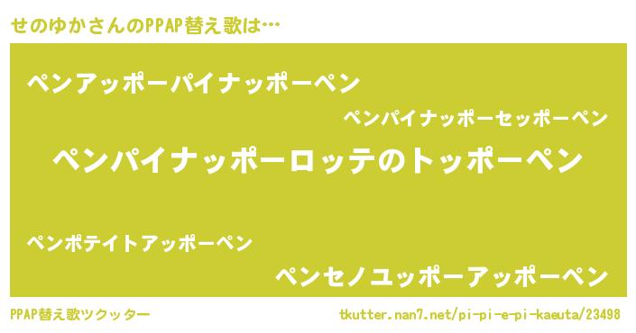 | 料理風あだ名 | 『せのゆかごはん』『せのゆかのトマト煮』 |