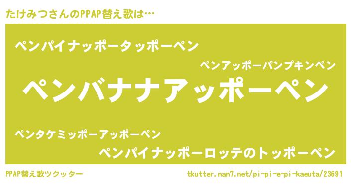 | 男性向けラノベタイトル風あだ名 | 『この素晴らしい世界にたけみつを!』 |