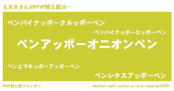 | 意味不明あだ名 | 『えまきフォーエバー』『ペロリンえまき』 |