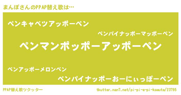 | ピコ太郎風あだ名 | 『マン四郎』『マコ一郎』『ママ太郎』 |