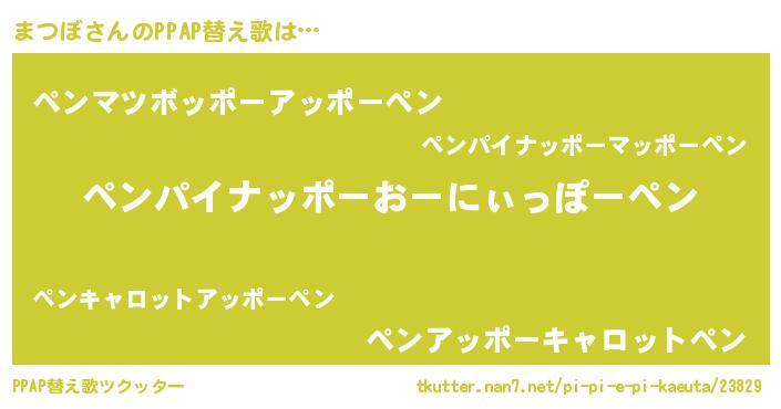 | ピコ太郎風あだ名 | 『ママ太郎』『マツ次郎』『ピマ八郎』 |