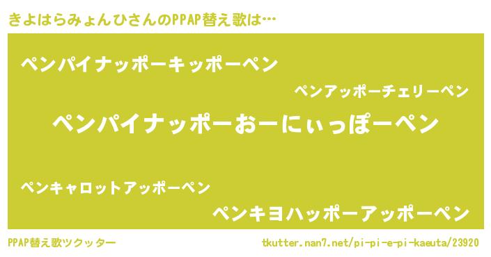 | 欧米人風あだ名 | 『ダニエルきよはらみょんひ』 |