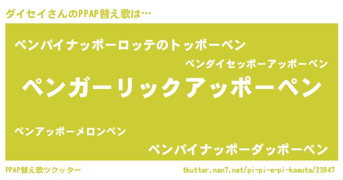 | 意味不明あだ名 | 『ペロリンダイセイ』『永久保存ダイセイ』 |