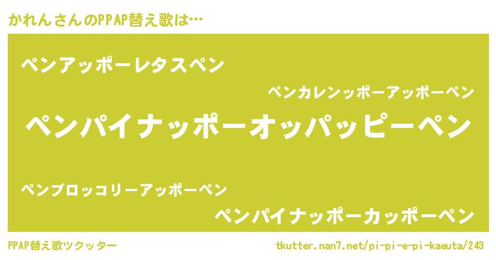 | 意味不明あだ名 | 『もやし科かれん属』『自称かれん』 |
