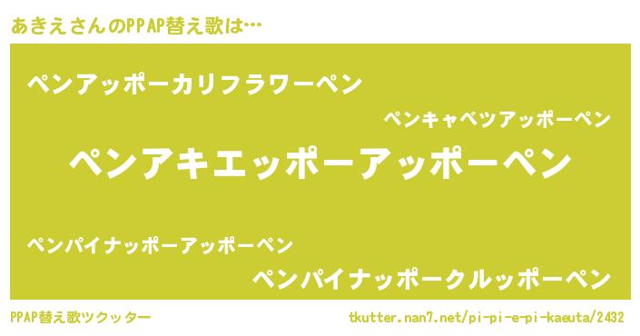 | ピコ太郎風あだ名 | 『アキ四郎』『ピア史郎』『アア太郎』 |