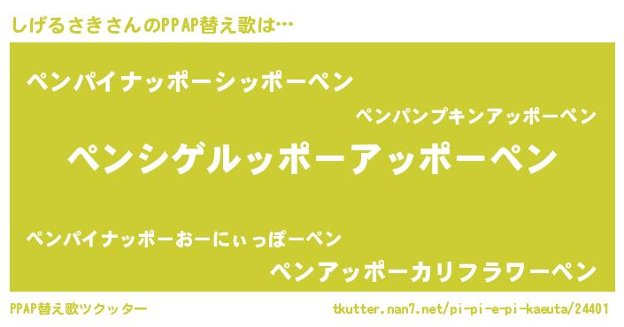 | ピコ太郎風あだ名 | 『シゲ二郎』『ピコシ郎』『ピシ史郎』 |