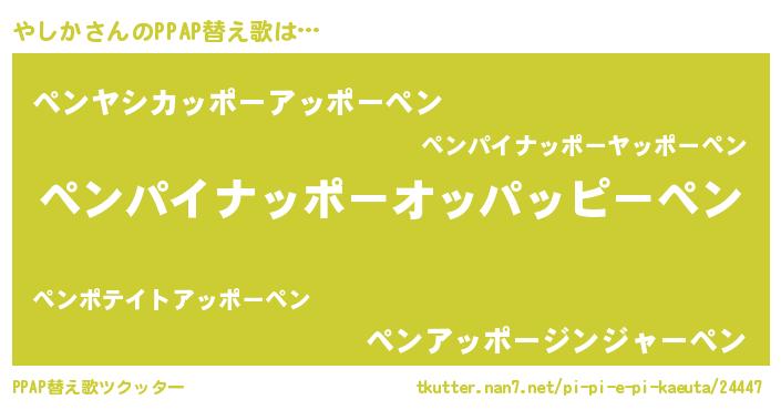 | ヒーロー風カッコイイあだ名 | 『慈愛の使者やしか』『黄金騎士ヤシ』 |