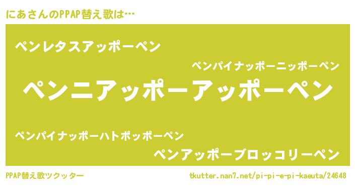| 意味不明あだ名 | 『住所不定無職にあ(47歳)』『自称にあ』 |