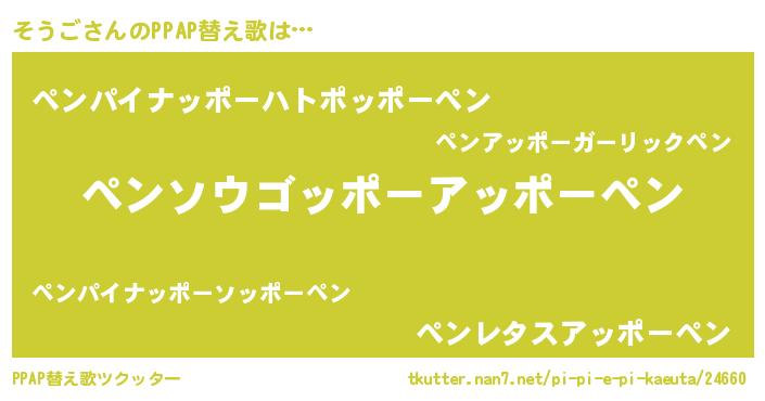 | ピコ太郎風あだ名 | 『ソウ二郎』『ソソ太郎』『ソコ八郎』 |
