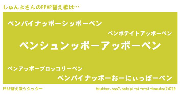 | ピコ太郎風あだ名 | 『シュ二郎』『ピコシ郎』『シシ太郎』 |