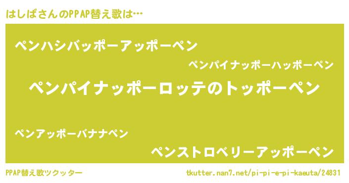 | ピコ太郎風あだ名 | 『ハハ太郎』『ハシ八郎』『ハコ次郎』 |