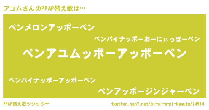 | 欧米人風あだ名 | 『アンジェラ・アユム』『ウサインアユム』 |