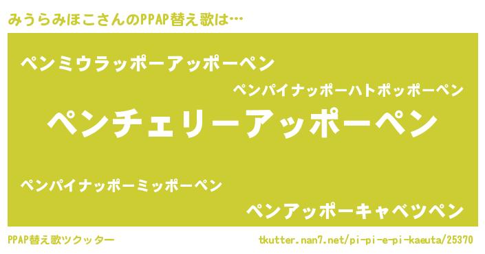 | ピコ太郎風あだ名 | 『ミコ三郎』『ミウ六郎』『ピミ二郎』 |