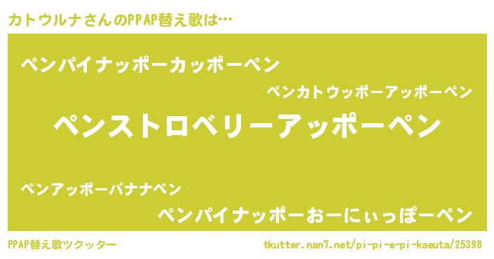 | ヘコむあだ名 | 『カトふぇ~』『カトウルナ(遠い目)』 |