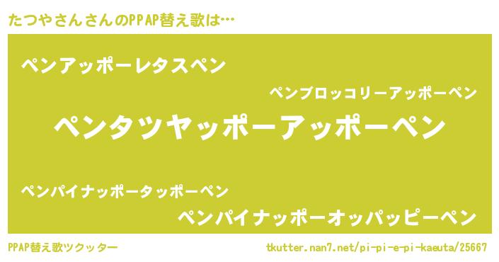 | ピコ太郎風あだ名 | 『タツ二郎』『ピタ五郎』『タタ太郎』 |