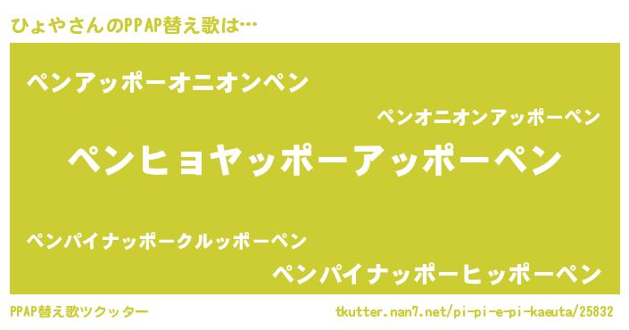 | ピコ太郎風あだ名 | 『ヒョ太郎』『ピヒ六郎』『ピコヒ郎』 |