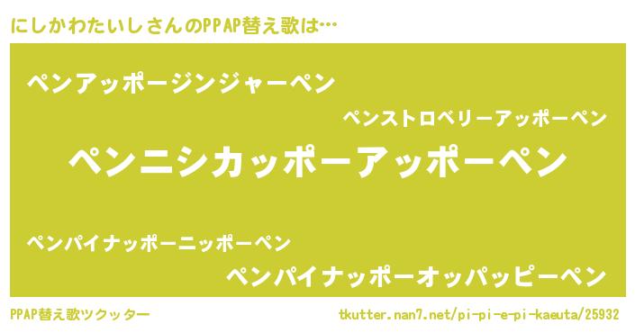 | 料理風あだ名 | 『にしかわたいしごはん』 |