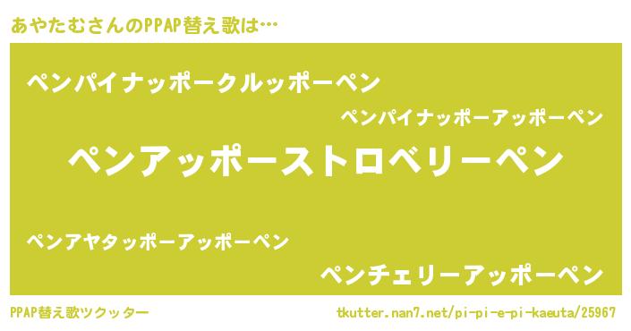 | 欧米人風あだ名 | 『あやたむ・ステッグマイヤー』 |