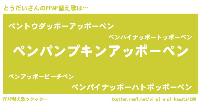 | ピコ太郎風あだ名 | 『トコ二郎』『トウ十郎』『トト太郎』 |