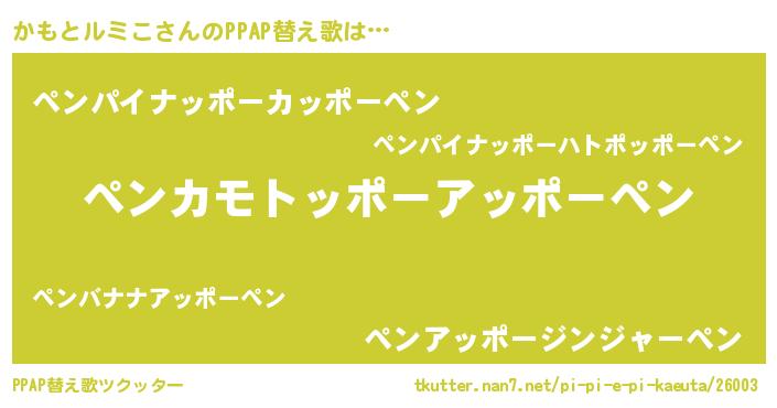 | ピコ太郎風あだ名 | 『カモ三郎』『ピコカ郎』『ピカ八郎』 |