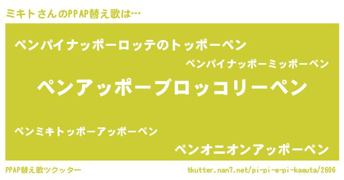 | ピコ太郎風あだ名 | 『ピミ十郎』『ミミ太郎』『ミコ六郎』 |