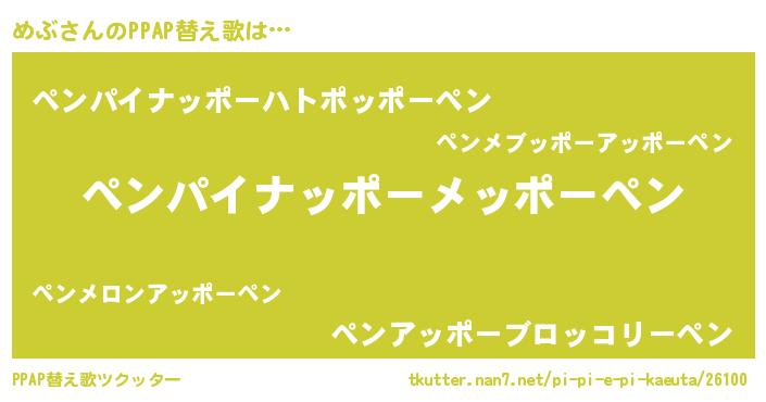 | ヘコむあだ名 | 『めぶ(震え声)』『豆乳』『めぶ太郎』 |