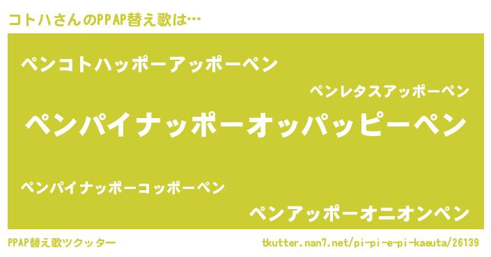 | 意味不明あだ名 | 『エリンギ科コトハ属』『ペロリンコトハ』 |