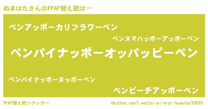| 男性向けラノベタイトル風あだ名 | 『おまえをオタクにしてやるから、俺をぬまはたにしてくれ! 』 |